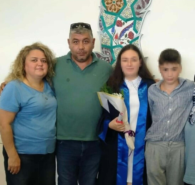 M.D.Y. (sağdan birinci), Hasan Y. (soldan ikinci) ve Çiğdem Y. (soldan birinci)