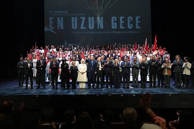 Fetullahçı Terör Örgütü'nün 15 Temmuz'da kalkıştığı hain darbe girişiminin üzerinden tam 9 yıl geçti. 253 şehit verdiğimiz demokrasi destanı, dün yurdun bir yanında anılırken Cumhurbaşkanlığı tarafından hazırlanan "En Uzun Gece" destanının ilk temsili, 15 Temmuz Demokrasi ve Milli Birlik Günü'nde Cumhurbaşkanlığı Külliyesi'nde gerçekleşti.