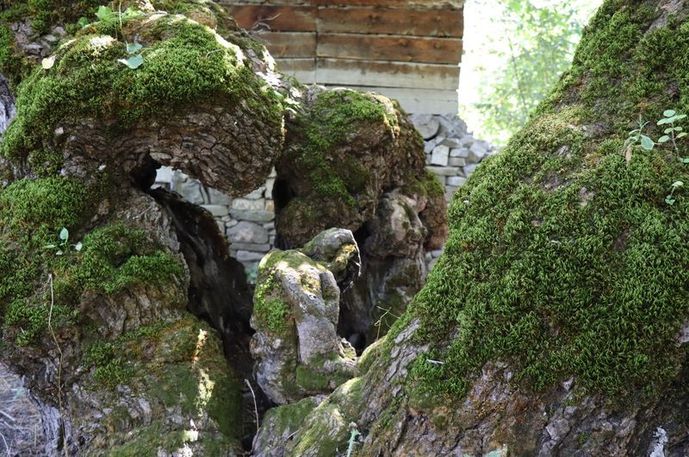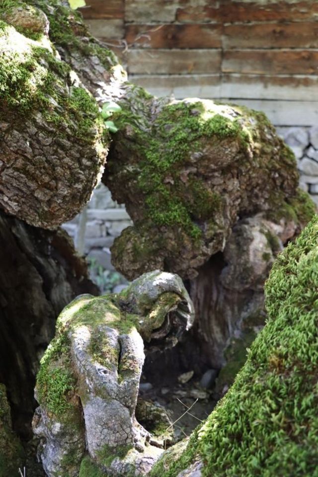 Ağaçta oluşan şekil, yere oturmuş ve aşağıya doğru bakan bir insan silüetini andırıyor.