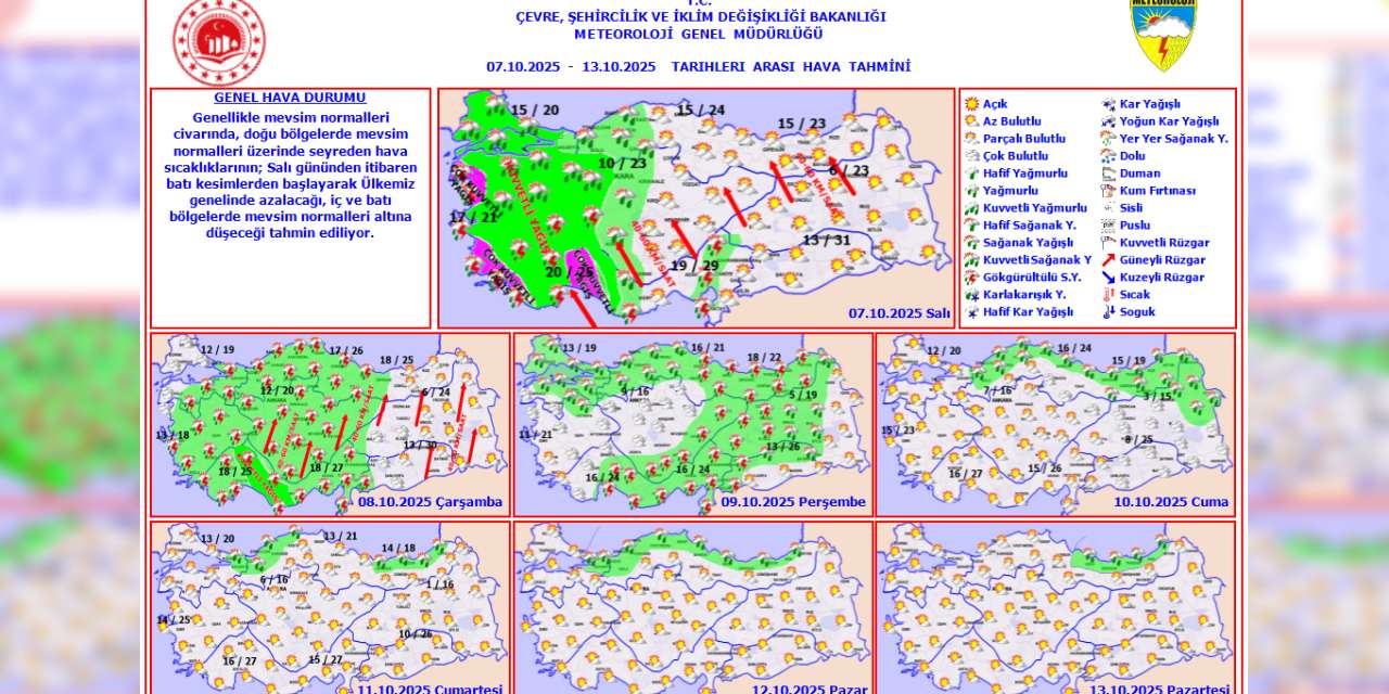 HAVA SICAKLIĞI: Hava sıcaklığının, batı kesimlerde 3 ila 5 derece azalacağı, diğer yerlerde mevsim normallerinin üzerinde seyredeceği tahmin ediliyor.