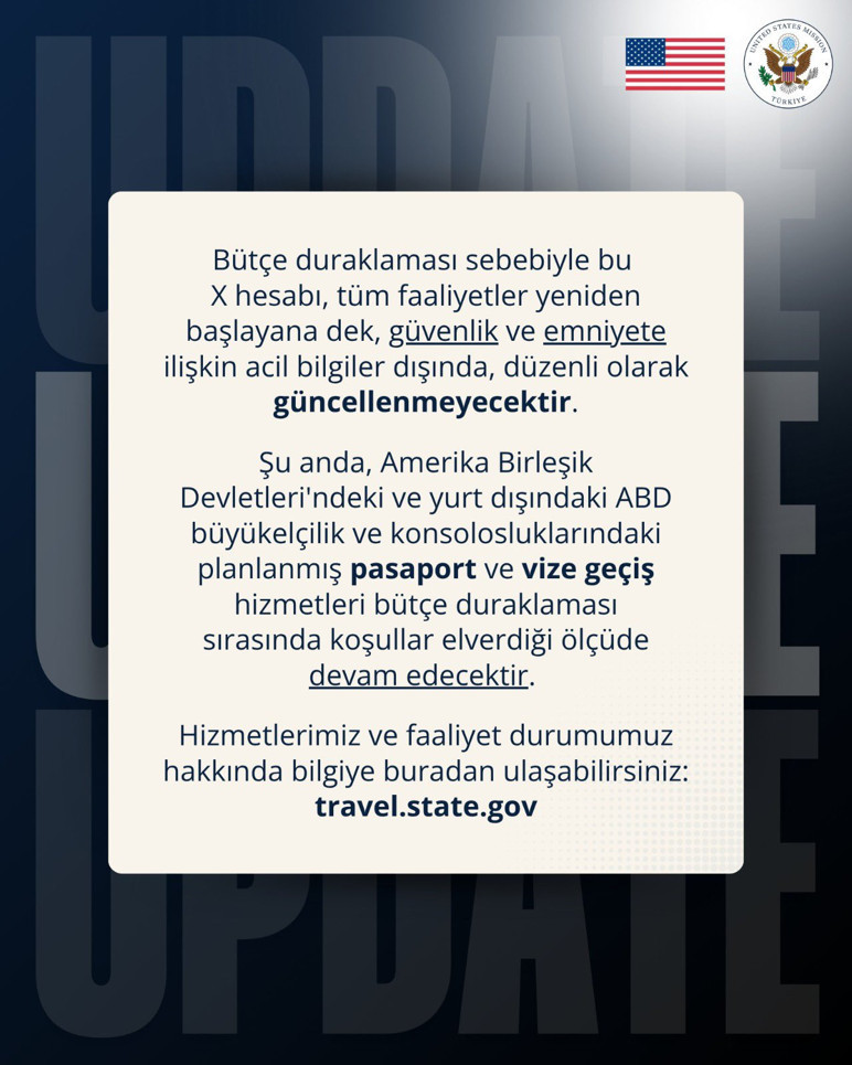 Açıklama, Washington’da federal hükümetin bütçe konusunda yaşadığı kilitlenmenin ardından geldi. ABD’de bütçe anlaşmazlıkları hükümet faaliyetlerini doğrudan etkilerken, yurt dışındaki diplomatik misyonların da operasyonlarını kısıtlamasına yol açabiliyor.