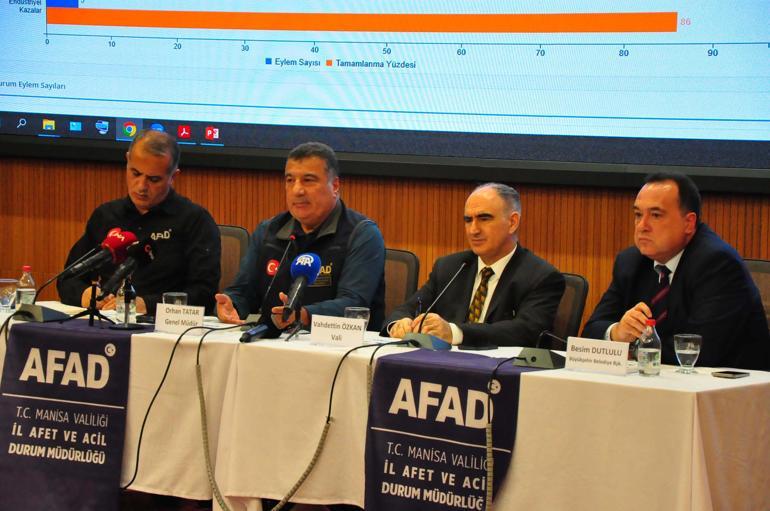 Manisa İl Tarım ve Orman Müdürlüğü toplantı salonunda Manisa Valisi Vahdettin Özkan ve AFAD Deprem ve Risk Azaltma Genel Müdürü Prof. Dr. Orhan Tatar başkanlığında İl Afet Risk Azaltma Planı (İRAP) değerlendirme toplantısı gerçekleştirildi. Toplantıya Vali Özkan ve Tatar'ın yanı sıra, Manisa Büyükşehir Belediyesi Başkanı Besim Dutlulu, ilçe kaymakamları, kamu kurum ve kuruluşlarının yöneticileri ile İRAP eylemlerinden sorumlu temsilciler katıldı. Prof. Dr. Orhan Tatar, "Eylem ve ilerleme durumlarını gözden geçirmek, iyi uygulamaları, azaltma bakış açısını ortaya koymak amacıyla bu toplantıyı gerçekleştiriyoruz. Sayın Belediye Başkanımız ve Sayın Valimiz de çok net bir şekilde ifade etti. Manisa, afet tehlikelerini bünyesinde en fazla barındıran illerimizden biri. Sadece İRAP'a bile baktığınızda, 11 farklı afet türü tanımlanmış. Bunların içinde en fazla kütle hareketleri, sonra meteorolojik afetler ardından deprem geliyor. Endüstriyel kazalardan maden kazalarına, orman yangınlarına kadar birçok farklı afet türüne dair eylemler tanımlanmış" ifadelerini kullandı.