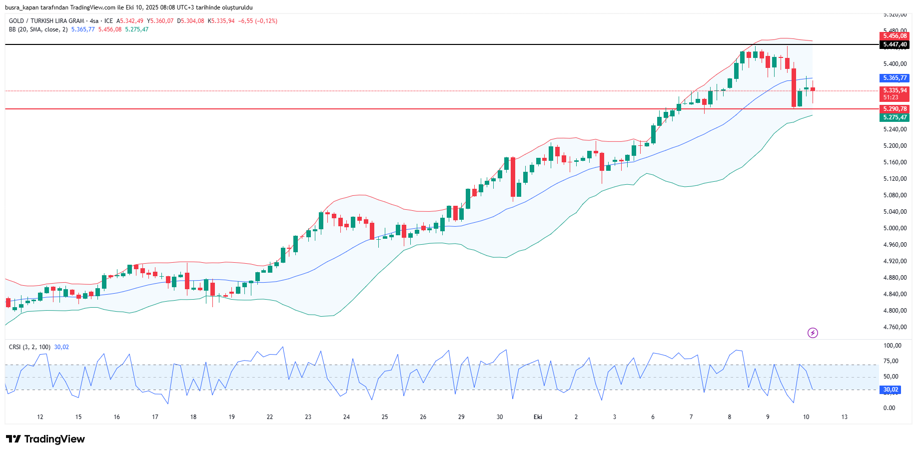 Gram altın, ons altında görülen sert düşüşün etkisiyle aşağı yönlü bir eğilim sergiliyor. Gram altın bu gece 5 bin 290 liraya kadar geriledi. Bugün sabah seansında ise 08.05'te 5 bin 337 lirada bulunuyor.