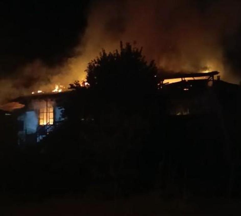 Kastamonu da çıkan yangında 2 katlı ahşap ev kül oldu