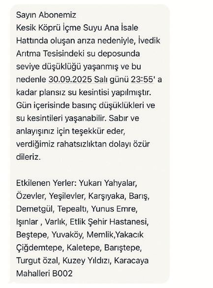 ASKİ, sık sık arızalanan CTP hatlarının çelik borularla değiştirileceğini, çalışmaların yaklaşık bir hafta süreceğini bildirerek bu süreçte Ankara genelinde 6 Ekim'e kadar dönüşümlü su kesintileri uygulanacağını açıkladı ve vatandaşlara SMS ile de bilgi gönderildi. İlk kesintiler Eryaman, Susuz ve Kazan Saray bölgelerinde başladı. Ancak açıklamalarda çelişkili ifadeler yer aldı. ASKİ, resmi açıklamasında 6 Ekim'e kadar su kesintisi yaşanacağını duyururken, vatandaşa gönderdiği SMS'te 30 Eylül'e kadar süreceğini bildirdi.