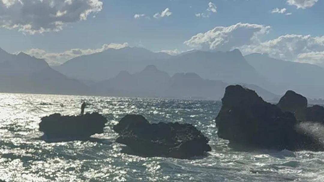 Antalya da bir kişi çıktığı kayalıkta dalgaların boyu yükselince mahsur kaldı