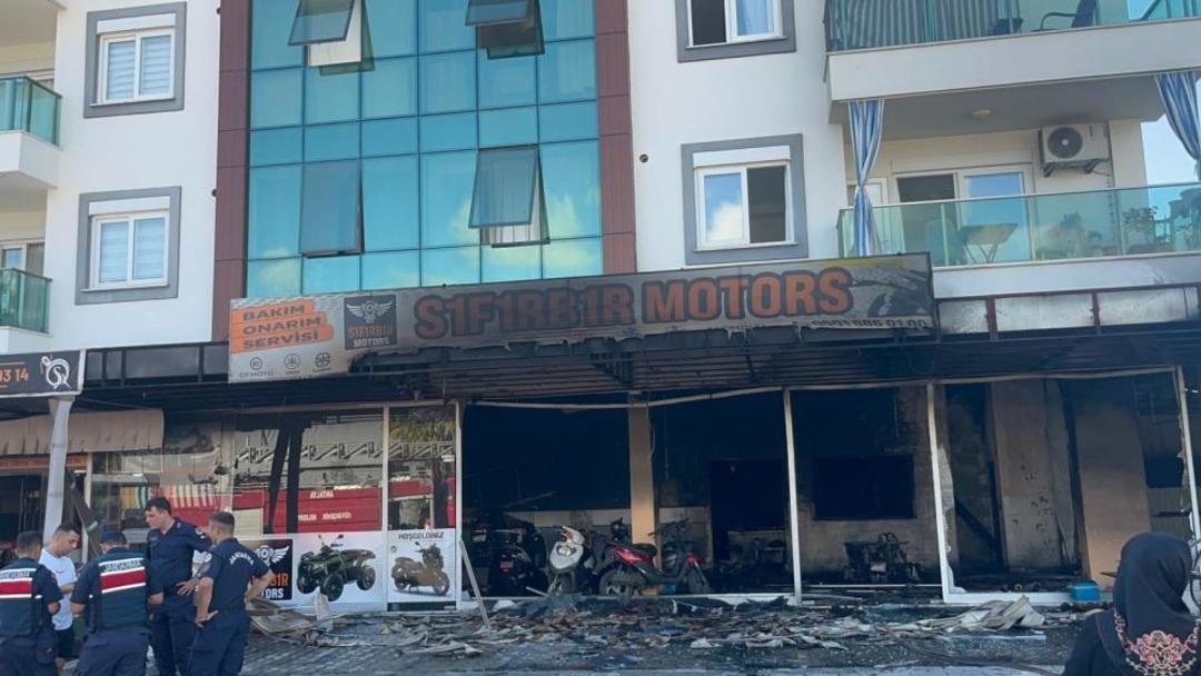 Antalya da motosiklet servisinde çıkan yangında 10 un üzerinde motosiklet küle döndü