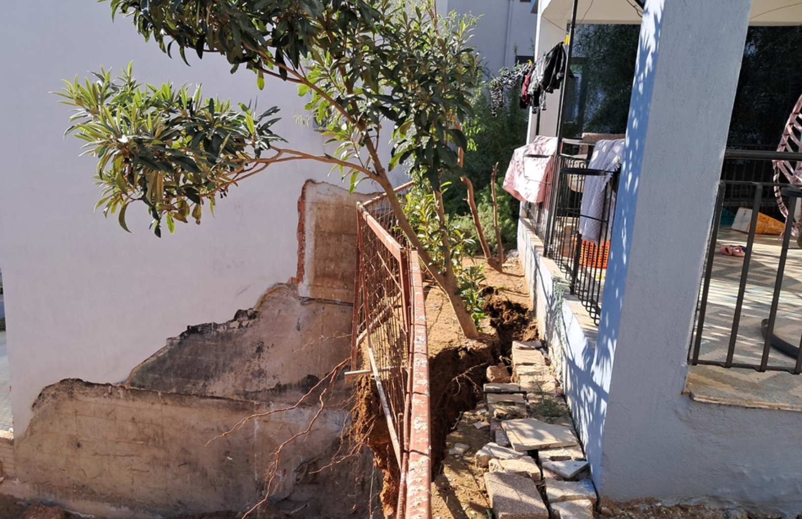 Antalya’nın Serik ilçesinde temel kazısı yapılan bir inşaat alanında meydana gelen toprak kayması, çevredeki yapılar için risk oluşturdu.