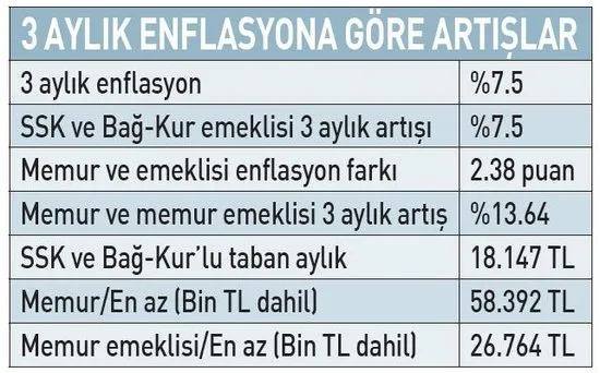 EMEKLİ VE MEMURA ÜÇ AYLIK ZAM Asgari ücret artışı emekli zamlarına yansır mı?