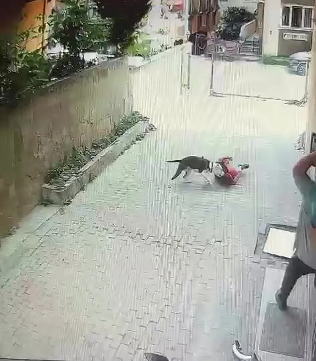 Köpeğin saldırması nedeniyle yere düşen çocuk ayağa kalkıp kaçmak istese de tekrar yere düşüp saldırıya maruz kaldı. O sırada apartmandan elinde çöp poşetiyle çıkan bir vatandaş çöp poşetini köpeğe atarak saldırıyı engellemeye çalıştı fakat başarılı olamadı.