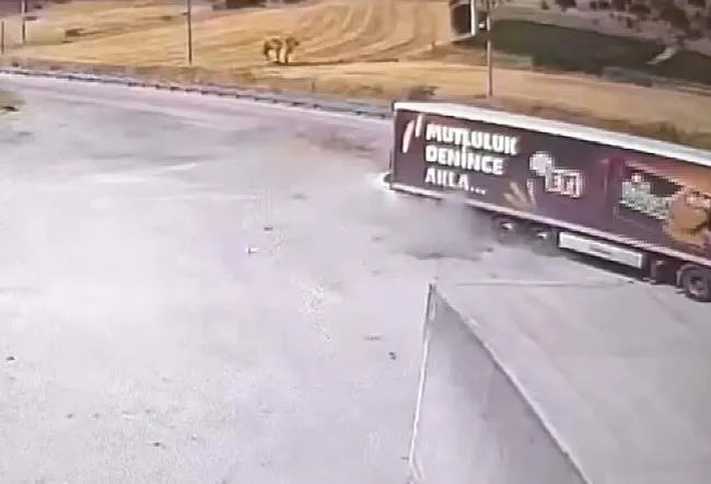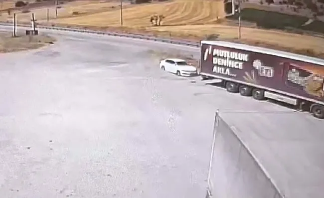 Görüntülerde Rıdvan Altekin'in hiç frene basmadan yol kenarındaki tıra hızla çarptığı görülüyor.