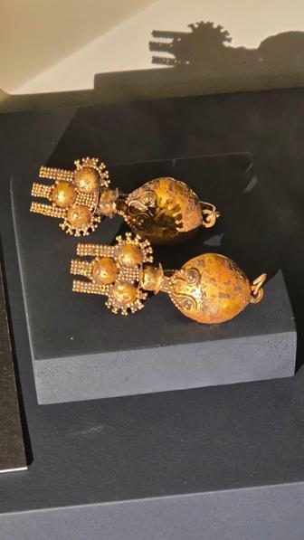 Koleksiyonda ayrıca, granülasyon tekniğiyle üretilmiş nadir bir altın küpe bulunuyor. Bu eser, antik Anadolu’da gelişmiş kuyumculuk sanatının özgün ve zarif bir örneğini temsil ediyor. Cam üfleme tekniğiyle yapılmış bir balsamarium tipi şişe ile minyatür amphora formunda bir diğer cam eser ise, Roma döneminde hem gündelik yaşamda hem de mezarlara bırakılan ölü hediyesi olarak yaygın biçimde kullanılan parçalardan. Özellikle cam işçiliği açısından dikkat çeken bu örnekler, dönemin zanaat becerilerine ışık tutuyor. Erken Orta Çağ’a tarihlenen, yeşil-sarı tonlarında camdan yapılmış ve çok kollu kandile (polykandelon) ait yağ kapları da dikkat çeken parçalar arasında yer alıyor. Çok kollu kandil yapısı hem dini ritüellerde hem de mimari süsleme olarak kullanılmış olabileceğine işaret ediyor.
