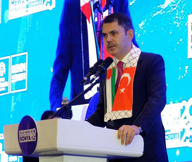 Bakan Kurum, konuşmasında, İsrail'in Gazze'ye yönelik saldırına tepki göstererek, şunları söyledi: "Bu toplantının bir diğer gündemi de barışın inşası, ancak hemen şunu ifade etmek isterim ki; bugünkü toplantımızı büyük bir eksiklikle gerçekleştiriyoruz. UCLG-MEWA Başkanı Filistin El-Halil Belediye Başkanı, İsrail'in Gazze'de devam eden soykırımı yüzünden alıkonuldu. Bu yüzden kendisi bugün aramızda değil. Gazze'de uygulanan bu katliam, bu zulüm, Filistin meselesinin insanlık için ne kadar utanç dolu bir boyuta ulaştığını bir kez daha gözler önüne seriyor. İşte gördünüz. Geçtiğimiz gün Gazze'yi bombalarla yıkıma uğratan, Gazzelileri açlığa terk eden İsrail; yükü sadece insanlık olan, oradaki insanlara yardım götüren Sumud filosuna da tahammül edemedi. Hukuk tanımazlığını tüm dünyaya bir kez daha gösterdi. Ben buradan insanlığın ortak vicdanına yapılan barbar saldırıyı lanetliyorum. Bu filoda bulunan, küçük teknelerde dünyanın vicdanını taşıyan tüm kardeşlerimi selamlıyorum. Hepsinin bir an önce serbest bırakılmasını diliyorum. Biliyoruz ki, bu yaşatılanlar kimsenin yanına kalmayacak. İnsanlık kazanacak, iyilik kazanacak, Filistin kazanacak, Gazzeli kardeşlerimiz kazanacak."