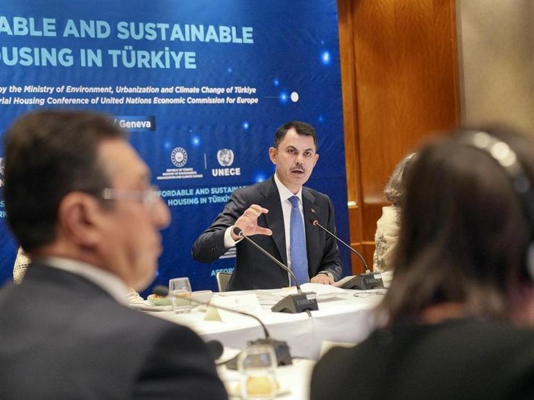Çevre, Şehircilik ve İklim Değişikliği Bakanı Murat Kurum, Birleşmiş Milletler Avrupa Ekonomik Komisyonu'nun Kentsel Kalkınma, Konut ve Arazi Yönetimi Komitesi'nin 86'ncı Oturumu için gittiği Cenevre’de, Türkiye’nin inşa ve sürdürülebilir şehircilik alanındaki çalışmalarına ilişkin sunum yaptı. Farklı ülkelerin hükümet temsilcileri ile uluslararası kuruluşların yöneticilerinin katıldığı programda asrın felaketinin ardından deprem bölgesinde yürütülen çalışmaların yer aldığı görüntüler izletildi. Bakan Kurum, küresel ölçekli rakamlarla dünyadaki konut arzına yönelik gelişmeleri, Türkiye’nin hayata geçirdiği sosyal konut projelerini, kentsel dönüşüm çalışmalarını, deprem bölgesindeki 453 bin konutluk inşa seferberliğini, sürdürülebilir şehircilik çalışmalarını ve 500 bin sosyal konut projesine yönelik hazırlıklarını anlattı.