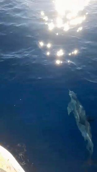 Yunuslar, denizde ilerleyen tekneyle birlikte yüzdü. Zaman zaman su yüzeyinde zıplayan yunuslar, Akman tarafından cep telefonu kamerasıyla kayda alındı.