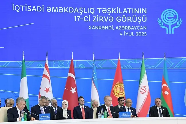Erdoğan, Azerbaycan'ın Hankendi şehrinde gerçekleştirilen Ekonomik İşbirliği Teşkilatı 17. Zirvesi'ndeki konuşmasında, ekonomi ve ticaretin yanı sıra turizm alanındaki işbirliğinin de teşkilata ayrı bir ödev yüklediğini söyledi.