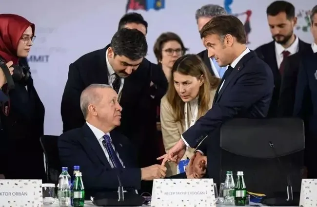 Geçtiğimiz ay Arnavutluk'un Tiran şehrinde düzenlenen Avrupa Siyasi Topluluğu (AST) 6. Zirvesi'nde de benzer bir durum yaşanmıştı. O anlarda Macron, yine elini Erdoğan'ın eli üzerine koyarak psikolojik üstünlük kurmaya çalışmış, ancak Cumhurbaşkanı Erdoğan'ın Macron'un parmağını saniyelerce tutması ve bırakmaması dikkat çekmişti.