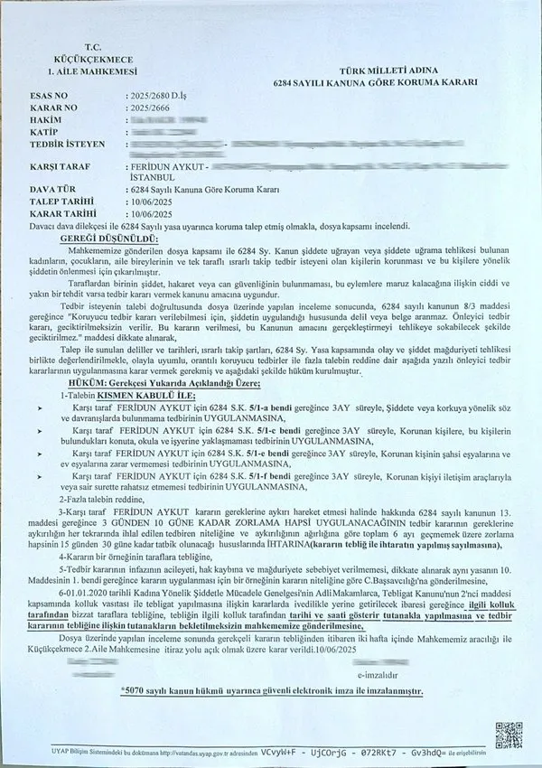Bahçelievler Belediyesi'nin CHP'li Meclis Üyesi Feridun Aykut, İddiaya göre belediye personelinden resmi bir evrakı kendi yerine imzalamasını istedi. Görevli kadın çalışan, işlemin açıkça yasalara aykırı olduğunu belirterek imza atmayı reddedince, Aykut bu defa tehdit ve baskı dozunu artırdı. "Ben meclis üyesiyim, müdürün beni aramazsa belediyeye gelip gerekeni yaparım" diyerek çalışanı sindirmeye kalkıştı. Yaşanan bu skandal sonrası psikolojik şiddete uğrayan kadın personel mahkemeye başvurdu. Küçükçekmece 1. Aile Mahkemesi, belediye meclis üyesi sıfatını kullanarak kamu görevlisine baskı kurmaya çalışan Feridun Aykut hakkında 3 ay süreyle uzaklaştırma kararı çıkardı.
