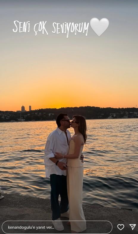 Kenan Doğulu, eşiyle birlikte çekilen kareyi "Seni çok seviyorum" notuyla paylaşırken, Beren Saat de bu mesaja "Ben de seni çok seviyorum. Mutlu 11. yıllara bebeğim" yanıtını verdi. Gün batımında çekilen fotoğraf, çiftin aşkını bir kez daha gözler önüne serdi.