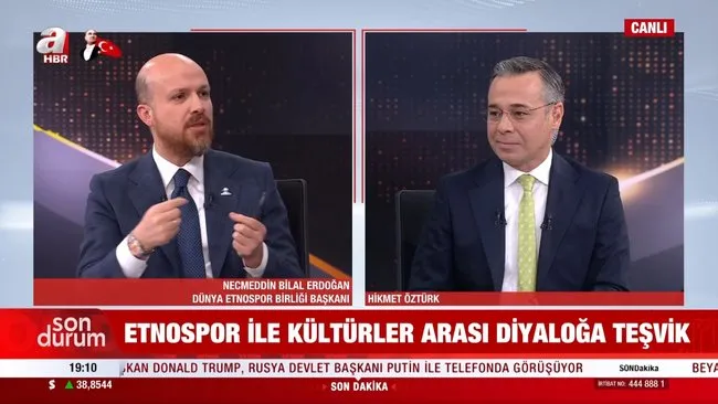 Dünya Etnospor Birliği Başkanı Bilal Erdoğan, A Haber canlı yayınında 22-25 Mayıs tarihlerinde gerçekleşecek festival ile ilgili açıklamalarda bulunuyor.