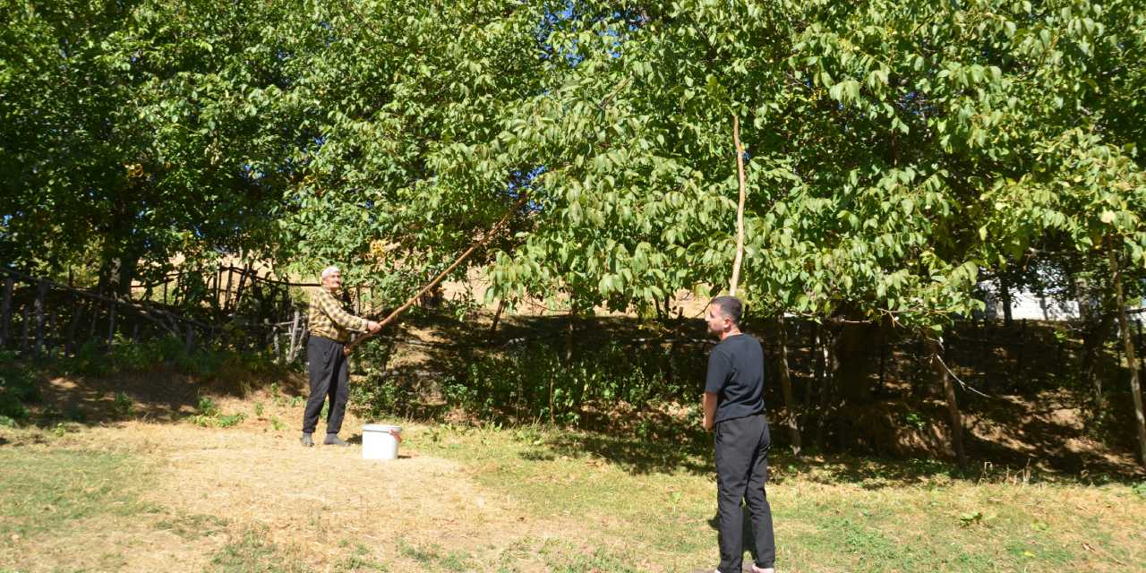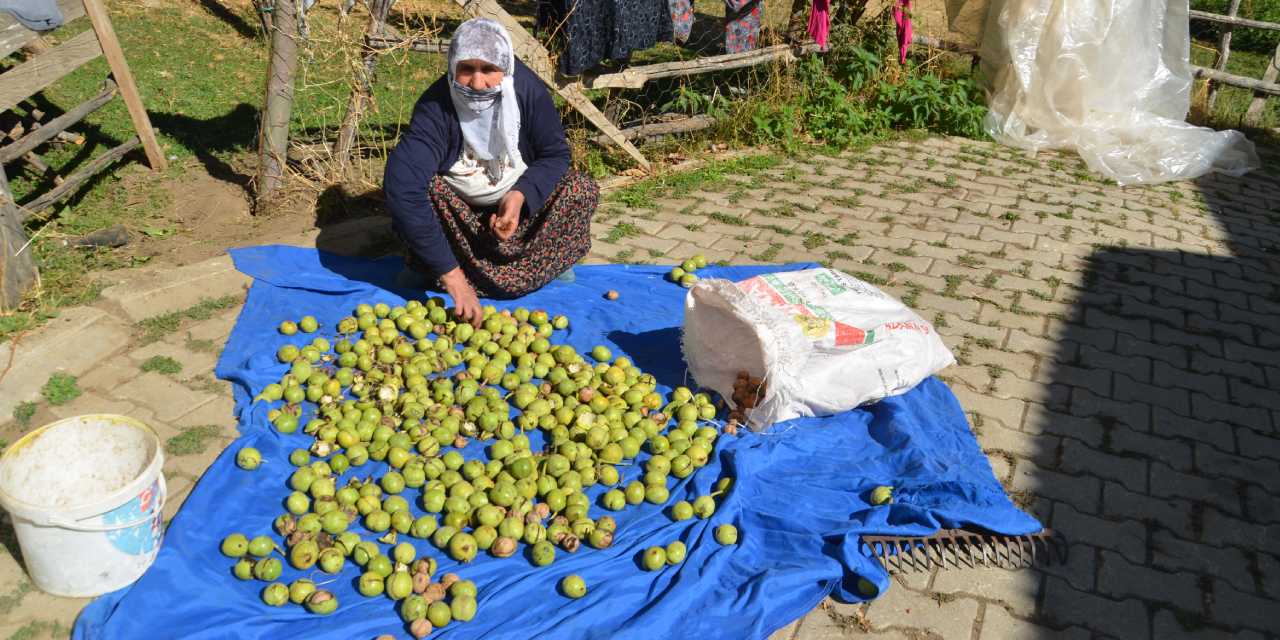 Mehmet Emin Dinçer de "Bu bölgede hemen hemen her yerde ceviz ağacı var. Civar köylerin hepsinde de ceviz yetişiyor. Benim 100 ceviz ağacım var. Hasada başladık. Gelen misafirlerimize ikram ediyoruz. Cevizin bir kısmını kendimize ayırıyoruz, bir kısmını da satarak aile ekonomimize katkı sağlıyoruz." ifadelerini kullandı.