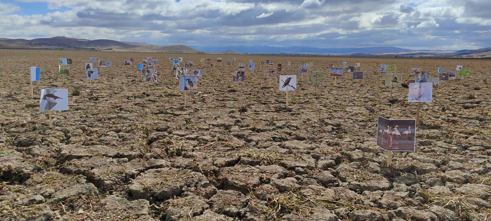 “Gölümüz, İç Anadolu'nun önemli göllerinin bir tanesidir. Göçmen kuşlarının uğradığı, dinlendiği, ürediği, beslendiği bir yer. Kuraklık nedeniyle şu anda su bulunmamakta. Biz de bu kuraklığa dikkat çekmek açısından, burada daha önce çektiğimiz kuşların fotoğrafların sergisini yaparak, sevgili dostlarımızla 'Burada kuraklık yaşanıyor. Suyumuzu dikkatli kullanalım' diye böyle bir etkinlik yaptık.