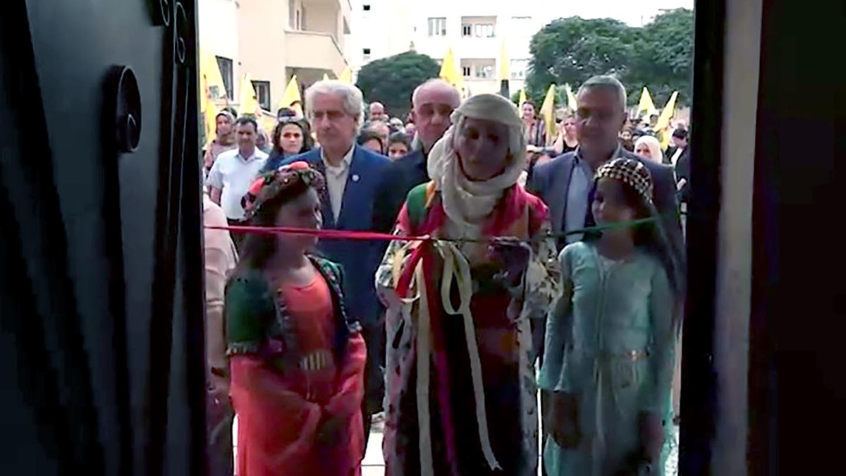 Binaya teröristbaşı Öcalan’ın resminin bulunduğu tabela asılırken, açılış kurdelesini ise PKK-YPG saflarında öldürülen üç teröristin annesi Halime Reşo yaptı. Açılış sonrasında derneğe gelen ziyaretçilere evlerine asmaları için Abdullah Öcalan’ın posterleri dağıtıldı. Aynı isimle kısa süre önce de Mardin’in Nusaybin ilçesinin karşısındaki Kamışlı ile Halep kentinde açılışlar yapılmıştı.