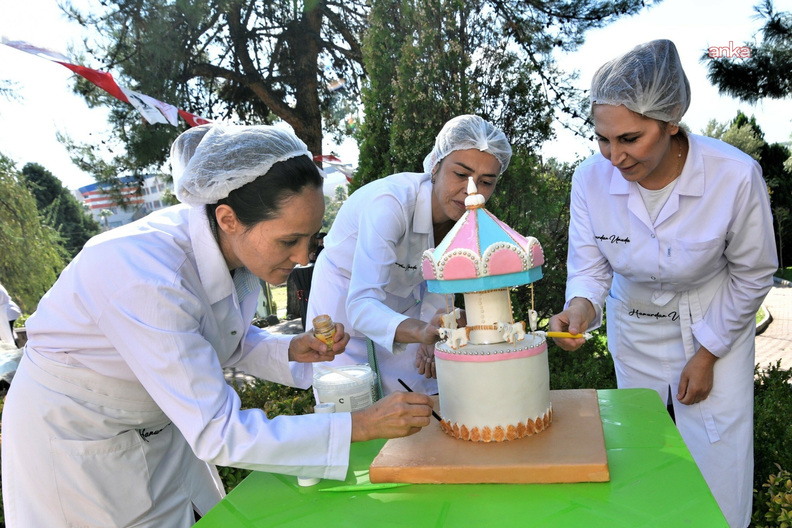 Bornova Belediyesi, İzmir Şekerciler ve Pastacılar Odası ile İzmir Soroptimist Kulübü iş birliğiyle düzenlenen İstihdam Garantili Pastacılık ve Ekmekçilik Kursu, Evka-3 Mutfak Atölyesi’nde tamamlandı. Üç ay süren ve toplam 300 saatlik eğitimleri başarıyla bitiren 3’ü erkek 38 kursiyer, kalfalık sertifikalarını renkli bir pasta yarışmasıyla taçlandırdı. Yarışmada “Yukarı Bak” pastası birinciliği, “Çiçek Perileri” ikinci, “Te Fiti” ise üçüncülüğü kazandı.