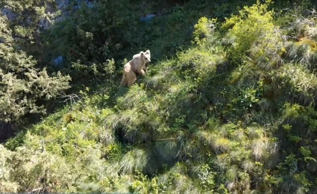 Boz ayı dron kamerasına yakalandı