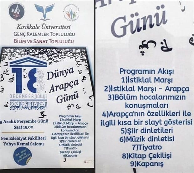 İkinci skandal ise daha da büyük tepki çekti. İstiklal Marşı'nı Türkçe okutmayan aynı üniversite, kısa bir süre sonra düzenlenen "Dünya Arapça Günü" etkinliğinde İstiklal Marşı'nın Arapça okunmasını programa dahil etti. Bu durum, "Türkçesi 'siyasi' bulunan marşın Arapçası nasıl serbest oluyor?" sorusunu gündeme getirdi.