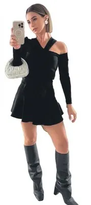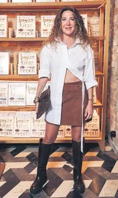 Stilinin yıldız parçası kesinlikle asimetrik kesim gömleği... Altına giydiği eteğin bağlama kısmının da asimetrik olması bence abartı olmuş. Ayrıca postal tabanlı çizmeleri de hiç olmamış! Detaysız düz bir etek ve düz ayakkabılarla, ya da daha klasik kesim çizmelerle çok daha şık görünebilirdi.