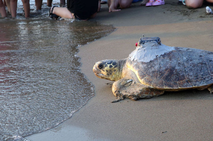 Takip cihazındaki pilin bitmesi nedeniyle 3 ay sinyal alınamayan caretta carettanın, bu yıl mayısta yeniden İztuzu'na dönmesi sevinçle karşılandı.