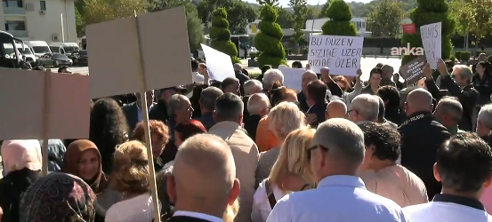 Beykozlular, seçilmiş Beykoz Belediye Başkanı Alaattin Köseler'in tutuklanmasının ardından AKP'ye katılan Başkanvekili Özlem Vural Gürzel'i protesto etmek için belediye binası önünde toplandı.