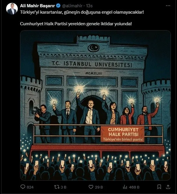 Dün CHP tarafından düzenlenen Beyazıt Meydanı'ndaki miting sonrasında skandal bir paylaşıma imza atıldı. Miting sırasında zaman zaman polislerle de tartışan CHP Grup Başkanvekili ve Mersin Milletvekili Ali Mahir Başarır, sosyal medya üzerinden miting sonrası bir paylaşım yaptı.