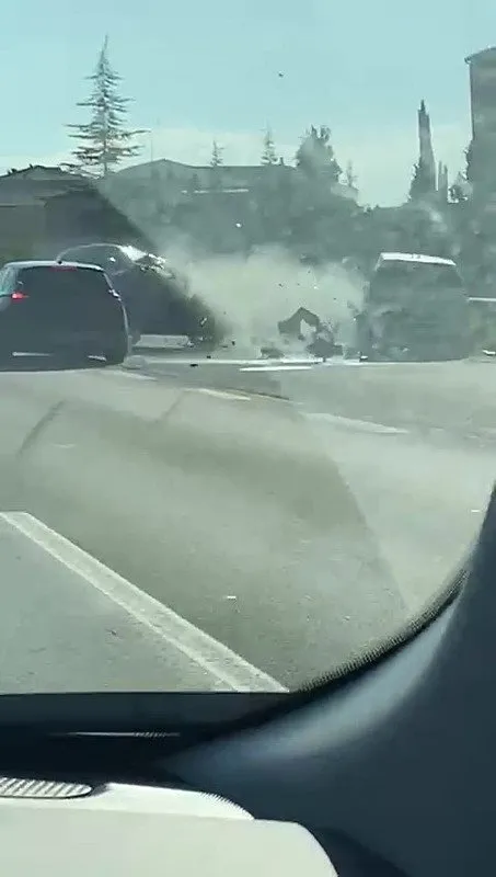 Bir süre böyle devam eden yolculuk sonrasında maganda sürücü, çocuklu ailenin aracıyla birlikte toplam 5 araca çarparak kaza yaptı.