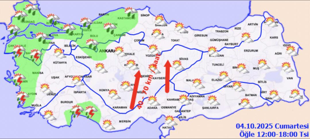 Meteoroloji, vatandaşları kuvvetli rüzgar ve sağanak yağışın yol açabileceği olumsuzluklara karşı dikkatli olmaya çağırdı.