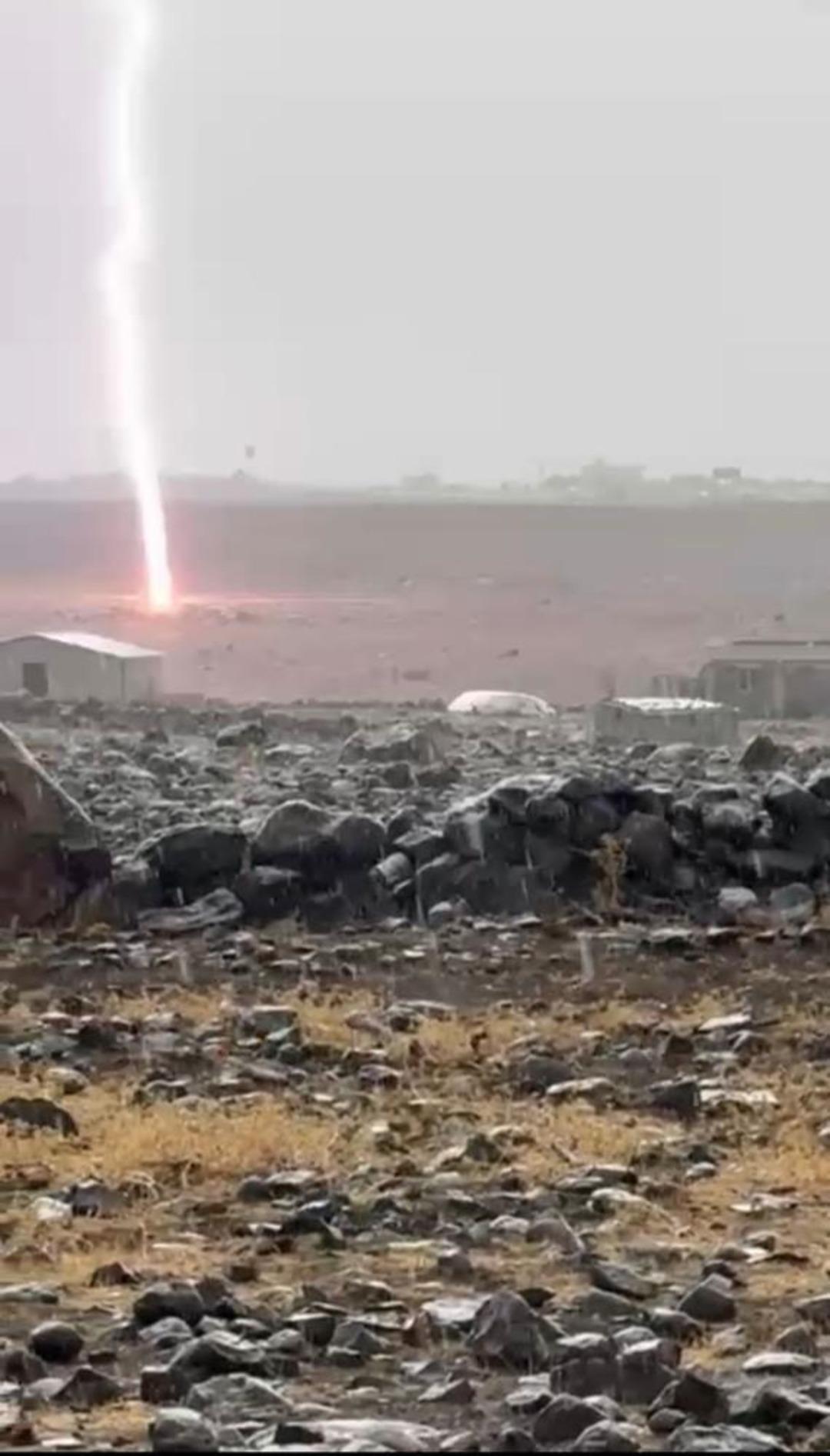 Köyde etkili olan sağanak sırasında bir anda yere düşen yıldırım, çevrede kısa süreli paniğe neden oldu. Olayda ölen ya da yaralanan olmazken, yıldırımın düşme anı bölgede bulunan bir vatandaş tarafından cep telefonuyla kaydedildi.
