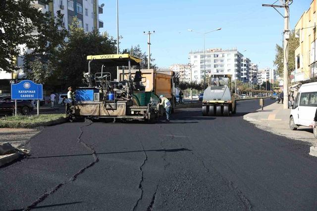 Kayapınar Caddesi’nde asfalt serimine başlayan Diyarbakır Büyükşehir Belediyesi, Kayapınar ilçesinde 16 bin 900 metrelik 8 caddeyi yenileyecek.