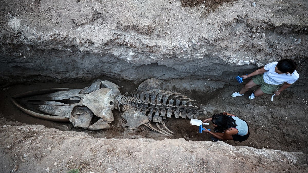 Mersin’de 2021 yılında sahile vuran 14 metrelik Fin balinasının gömülen iskeleti, dört yıl sonra bilimsel çalışmalar için yeniden gün yüzüne çıkarılıyor.