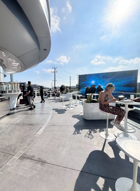 Retro-fütüristik tasarımıyla dikkat çeken mekân, aynı zamanda bir açık hava sineması işlevi de görüyor. Açılış gününde 1960’ların ünlü çizgi dizisi "The Jetsons" gösterildi. Tuvaletler ise uzay gemisi temasıyla dekore edildi.