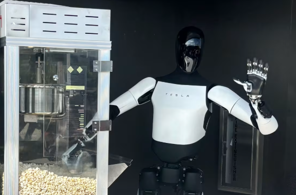 Restoranda Tesla'nın insansı robotu Optimus da görev aldı. Robot, ikinci kattaki terasta konuklara patlamış mısır sundu. Bazı ziyaretçiler robotla etkileşime girerek el hareketleriyle kalp şekli yaptırmaya çalıştı.