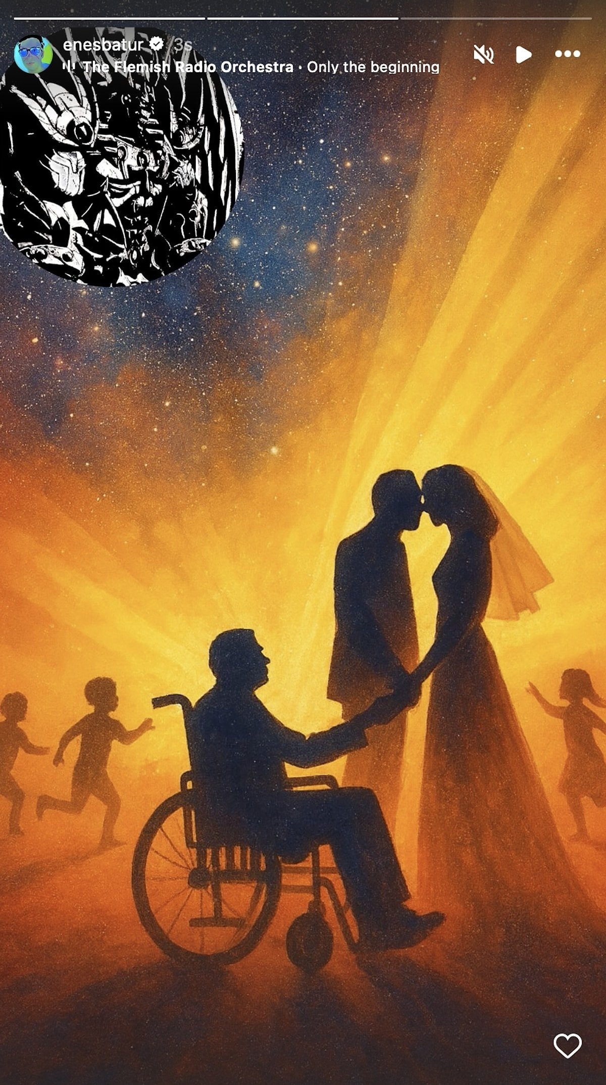 Başak Karahan'ın düğün hazırlıkları sürerken Enes Batur evli bir çift, birkaç çocuk ve bir de tekerli sandalyede bir adamın silüetini Instagram'da paylaşmıştı.