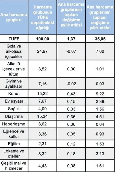Haziran ayı enflasyon rakamları bir kez daha piyasa beklentilerinin altında geldi. TÜİK'in perşembe günü açıkladığı rakamlara göre, haziranda enflasyon aylık bazda yüzde 1.37, yıllık bazda ise yüzde 35.05 olarak gerçekleşti. Gıda-alkolsüz içecekler ve giyim-ayakkabı grupları, manşet enflasyon rakamını yaklaşık 0.1 puan aşağıya çekti. Genel fiyat artış oranını en fazla körükleyen harcama grupları ise konut ve ulaştırma oldu. Bu iki harcama grubu içerisinde yer alan mal ve hizmetlerdeki fiyat değişimlerinin genel enflasyona aylık etkisi 0.79 puan kadar.