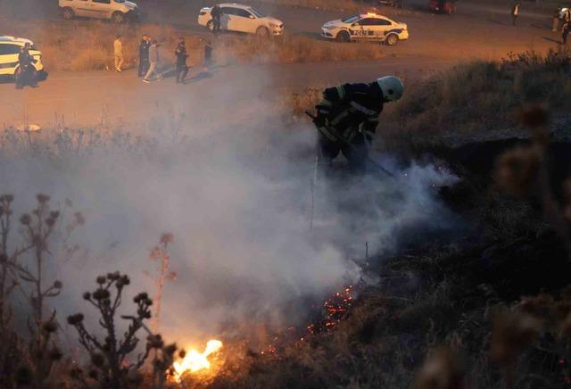 Konya da atılan havai fişek ağaçlık alanda yangına neden oldu