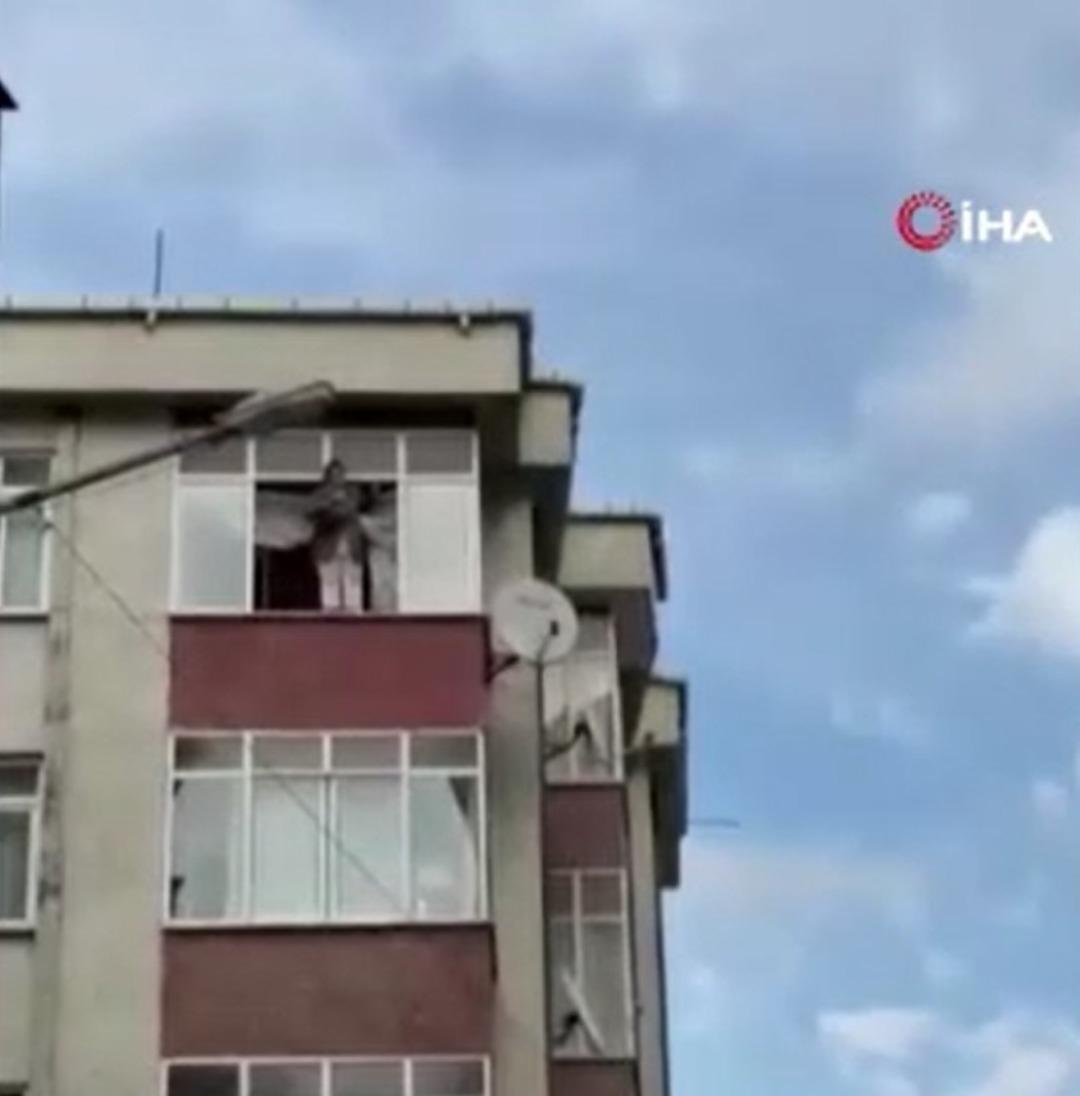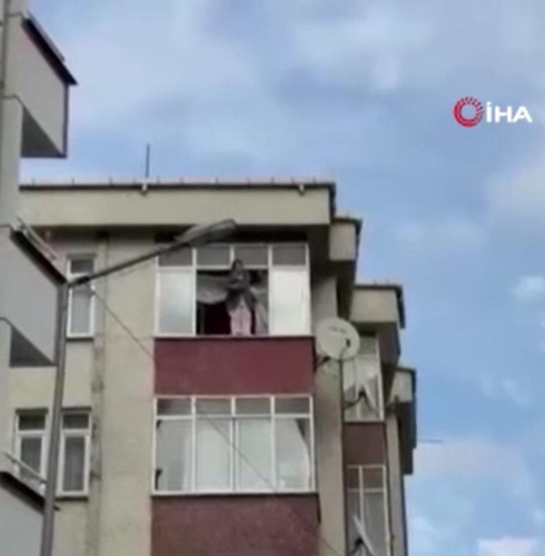 Esenyurt ta depremden korkan kadın cama çıktı çığlık attı: Abla bitti korkma