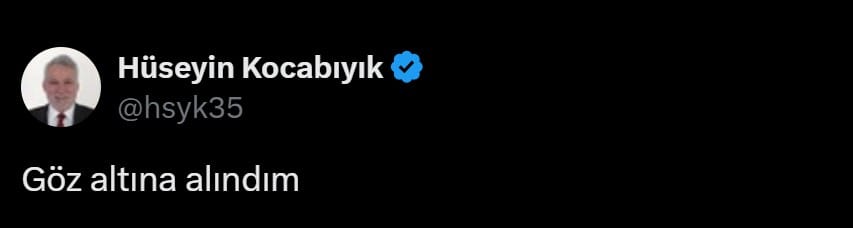 Gazeteci İsmail Saymaz, Kocabıyık'ın "cumhurbaşkanına hakaret iddiasıyla başlatılan soruşturma" nedeniyle gözaltına alındığını ve evinde arama yapıldığını belirtti. Saymaz, "Eski AK Parti İzmir Milletvekili Hüseyin Kocabıyık hakkında cumhurbaşkanına hakaret iddiasıyla soruşturma başlatıldı. Kocabıyık hakkında gözaltı ve evinde arama kararı verildi. Polis ekipleri şu an Kocabıyık’ın evinde arama yapıyor" ifadelerini kullandı.