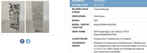 Ticaret Bakanlığı, güvensiz ürünler listesine üç yeni ürün ekledi. Yapılan denetimler sonucunda bazı oda kokuları ve evcil hayvan ürünlerinin piyasadan toplatılmasına karar verildi.