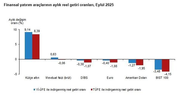 Türkiye İstatistik Kurumu (TÜİK), eylül ayına ilişkin "finansal yatırım araçlarının reel getiri oranları"nı açıkladı.