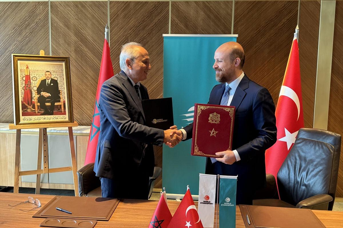 Yapılan görüşmede, Fas'ın Dünya Etnospor Birliği üyeliği ve iki taraf arasında geleneksel sporlar alanında işbirliğini öngören mutabakat zaptı imzalandı.