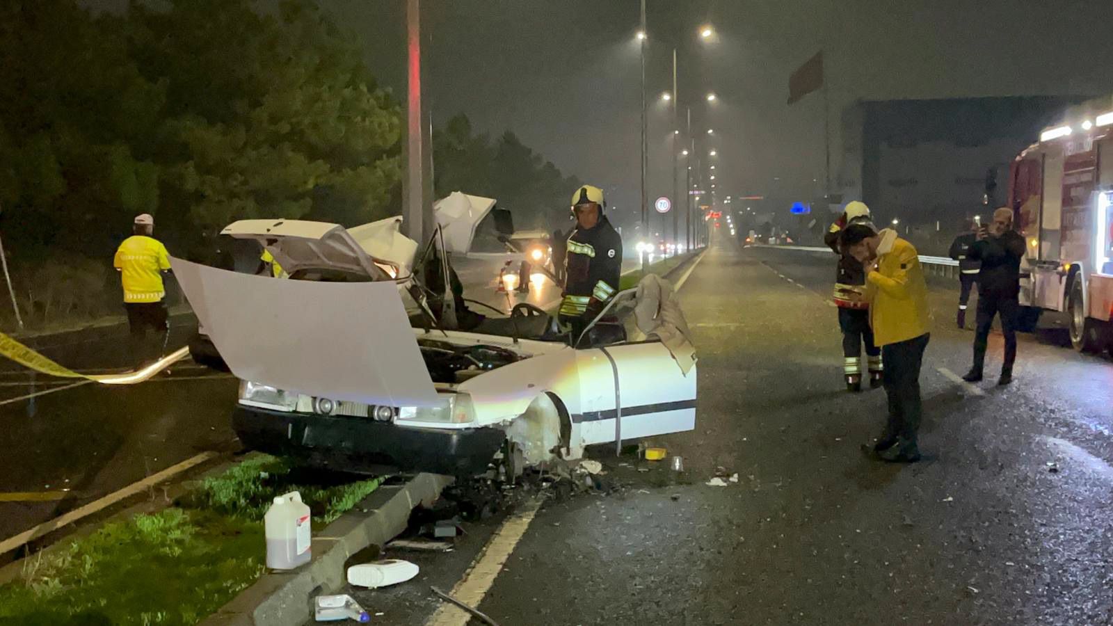 Kazanın şiddetiyle yolda savrulmaya başlayan otomobil aydınlatma direğine çarparak durabildi. Kazada otomobil ikiye bölünürken, otomobil sürücüsü yaralandı.